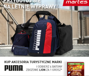 Zaopatrz się w akcesoria podróżne w Martes Sport! Kup saszetkę, torbę sportową, torebkę, portfel lub worek marki PUMA i odbierz 4 batony zbożowe Lion za 1 grosz!